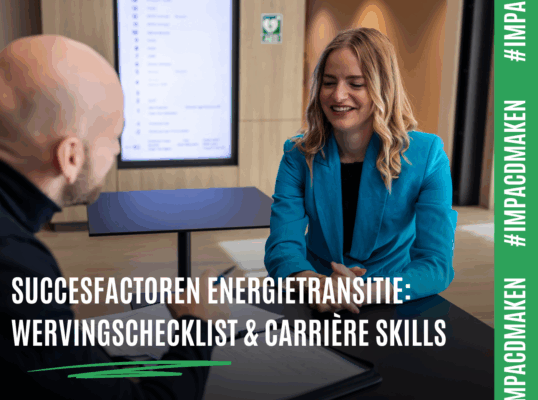 De energietransitie vraagt om meer dan technische oplossingen. Het draait om mensen die samen het verschil willen maken. Door de vijf succesfactoren te vertalen naar een praktische wervingschecklist en duidelijke carrièrevaardigheden, versterken we de duurzame ImpacD van Nederland. Of je nu organisatie of professional bent: investeren in leiderschap, samenwerking, innovatie, flexibiliteit en kennisdeling is essentieel voor blijvend succes.